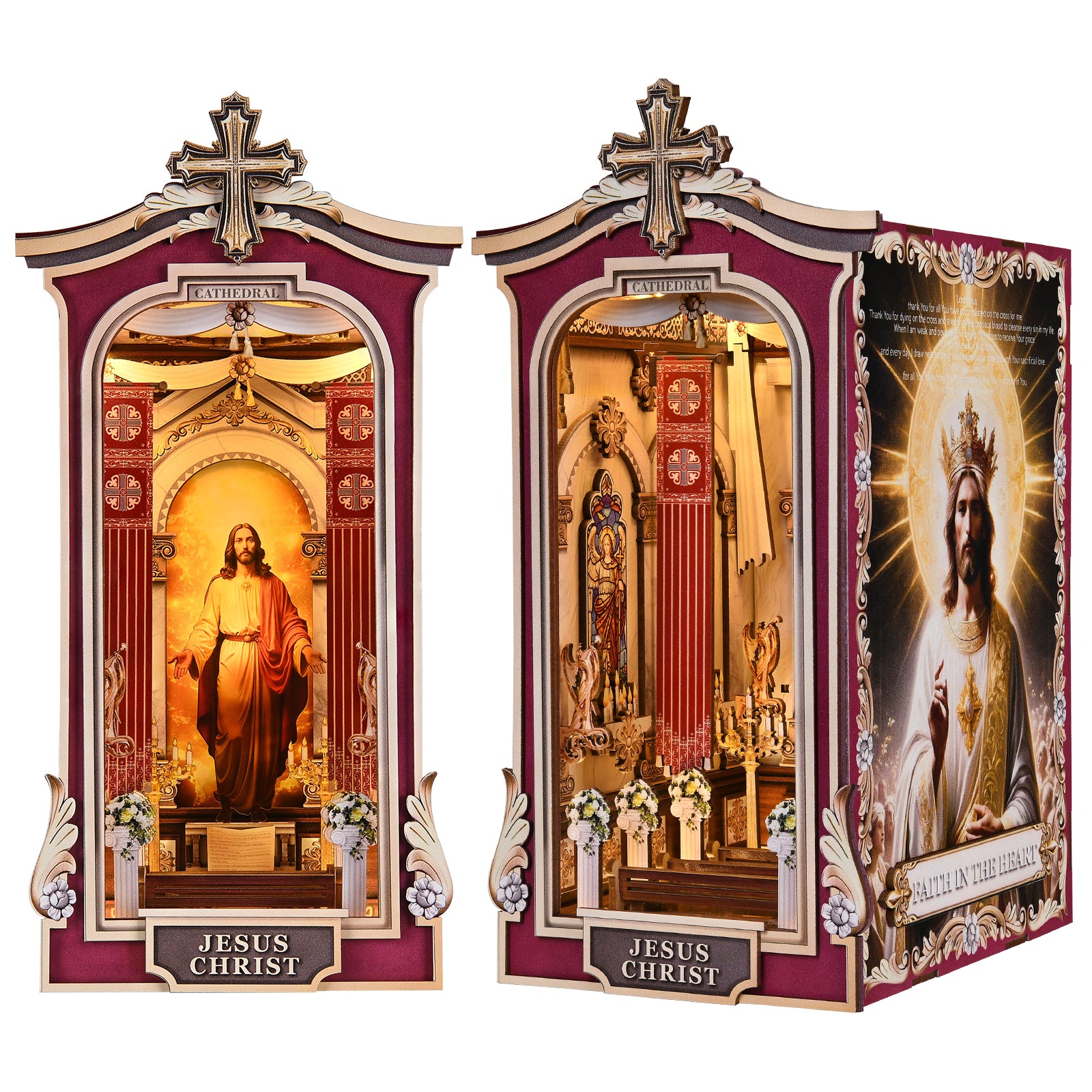 🏰 A finely crafted cathedral book nook that turns your bookshelf into a glowing work of art.